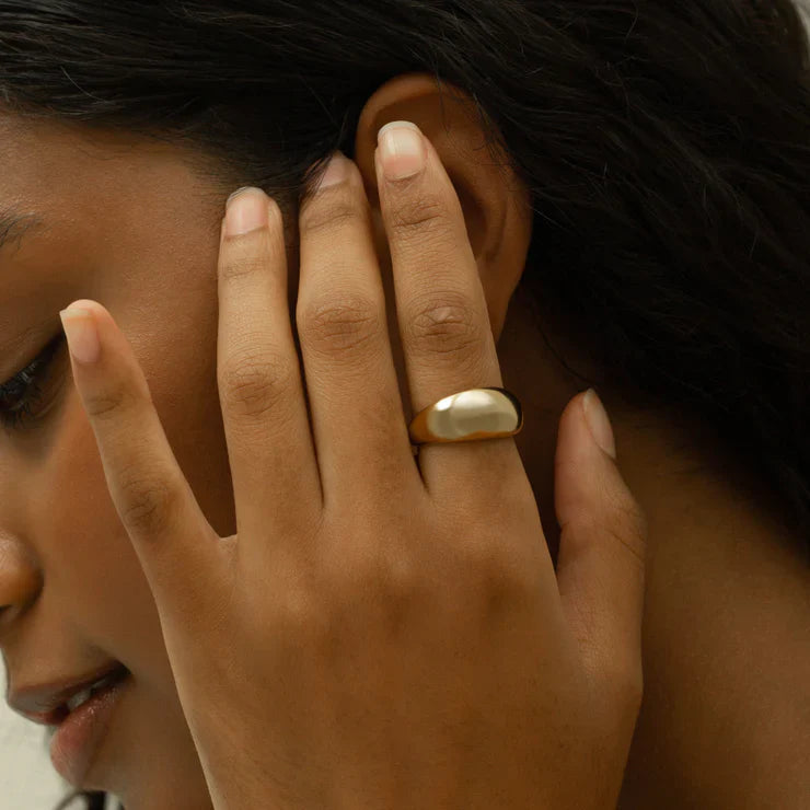 The Agnes is a bold ring that is sure to be noticed. Pair with contrasting metals, finer pieces or wear as a statement piece.