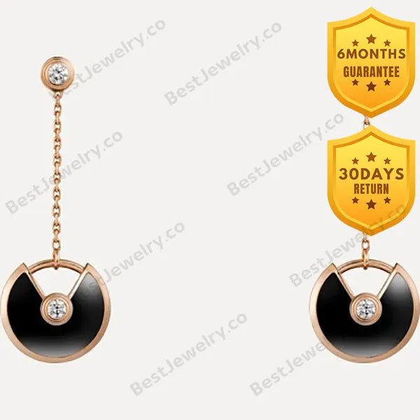 Introducing the Amulette Drop Earrings in stylish Onyx and Pink Gold. Made with carefully selected materials, these earrings exude elegance and sophistication. Perfect for any occasion, these earrings will elevate any outfit. Add a touch of luxury to your jewelry collection with these stunning drop earrings.