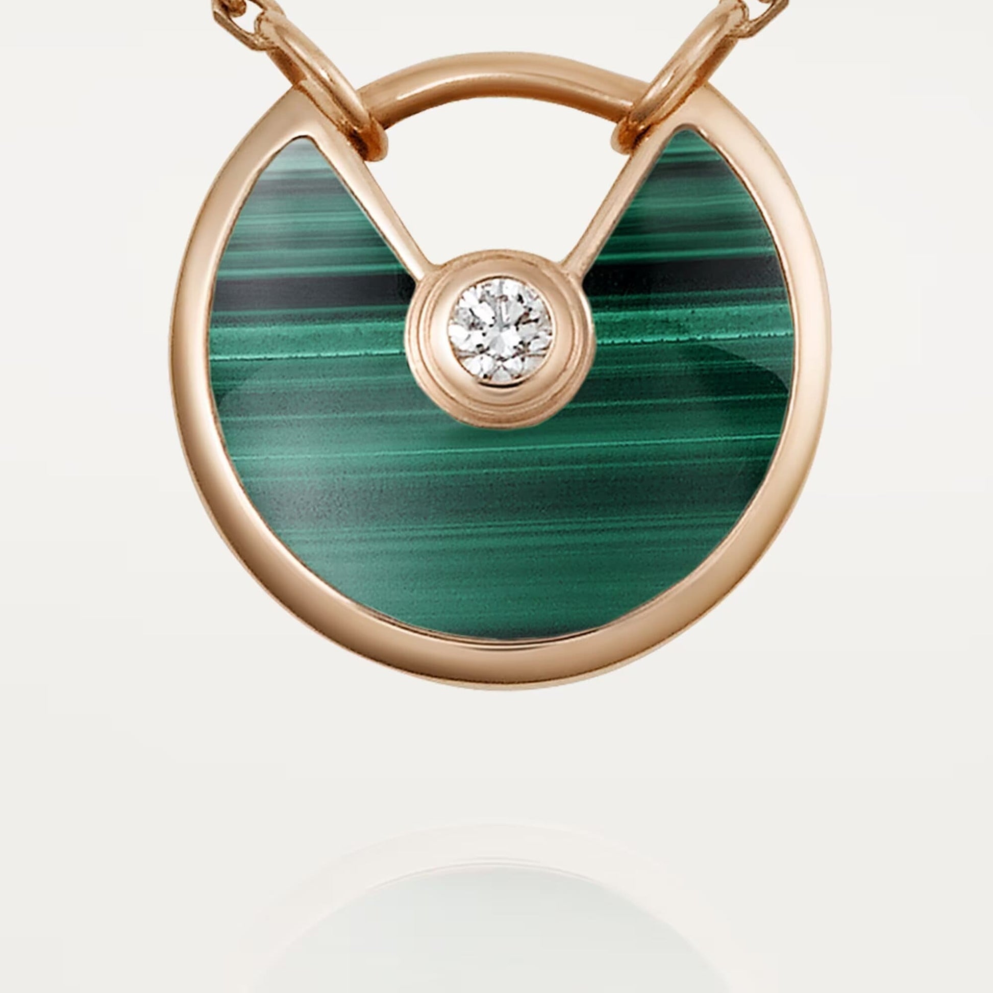 This necklace features a stunning Amulette Malachite pendant. Expertly crafted with precision and care, this necklace offers a unique blend of style and functionality, making it a must-have accessory for any jewelry collection.