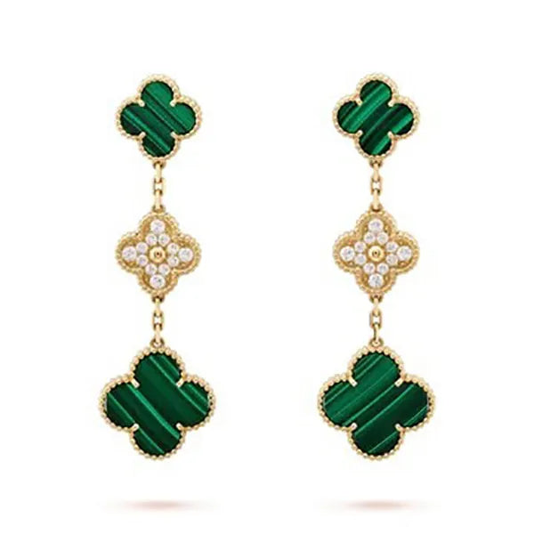 Clover Earrings Gold Malachite Diamond 3 Motifs