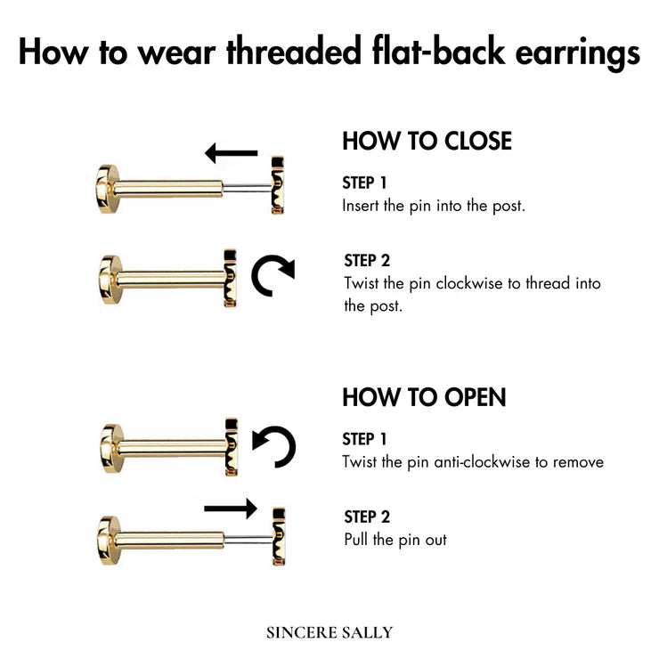 These stylish flat-back earrings combine a contemporary style with a touch of glamour. With its flat-back design, our signature Sincere Sally napping flat back earrings are designed to be worn 24/7 with guaranteed comfort! Our earrings offer a sleek and refined touch that can effortlessly enhance your earring stack for any occasion. Designed to wear even when you sleep!